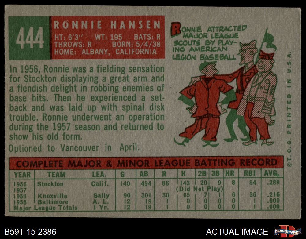 1959 Topps #444 Ronnie Hansen 4 - VG/EX