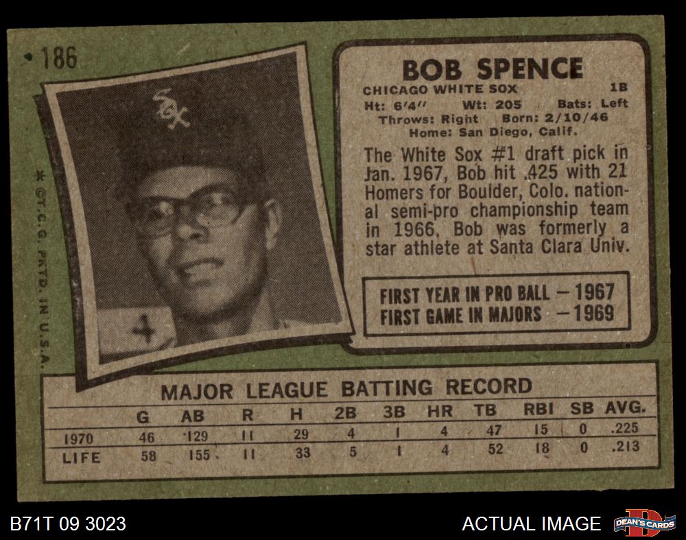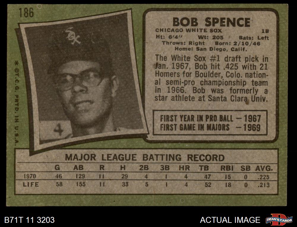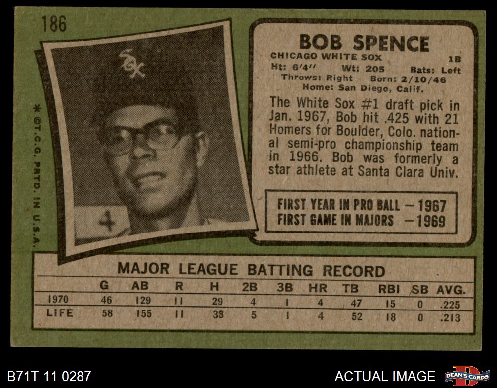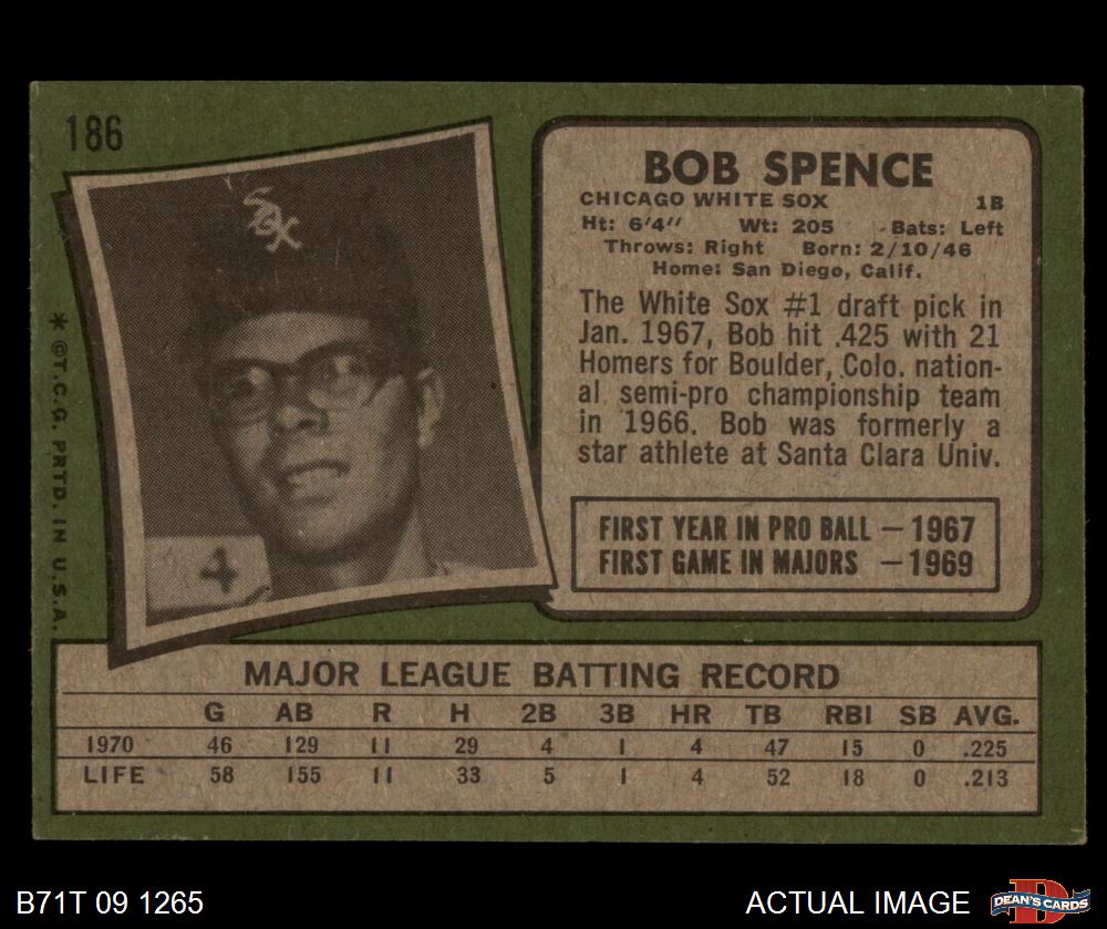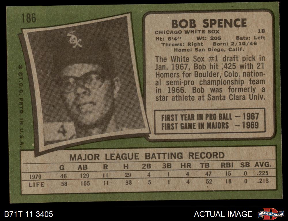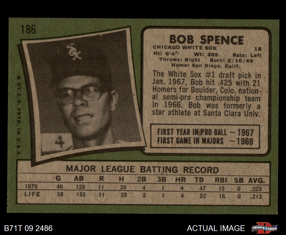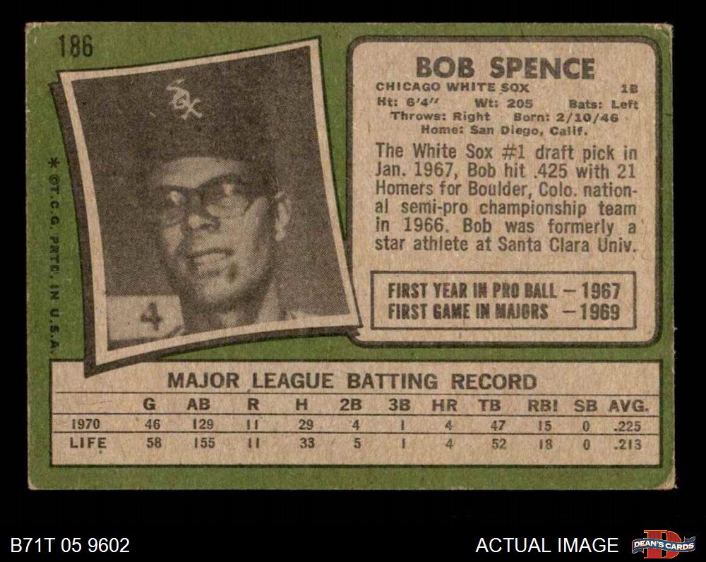 1971 Topps #186 Bob Spence