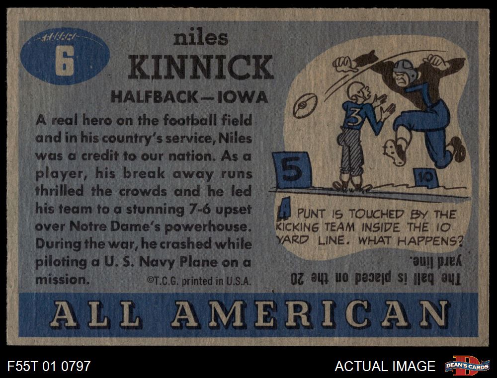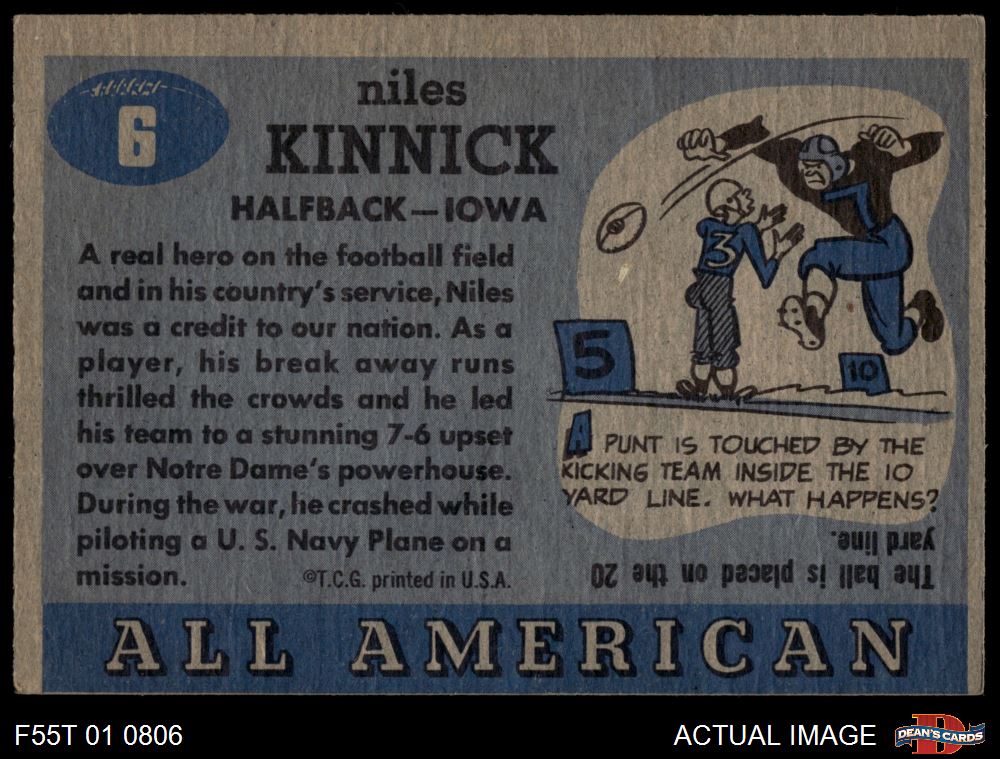 1955 Topps #6 First Name Misspelled as Niles Nile Kinnick 3 - VG