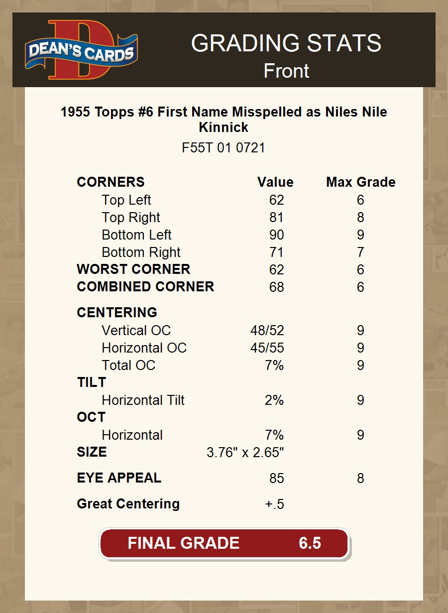 1955 Topps #6 First Name Misspelled as Niles Nile Kinnick 6.5 - EX/MT+