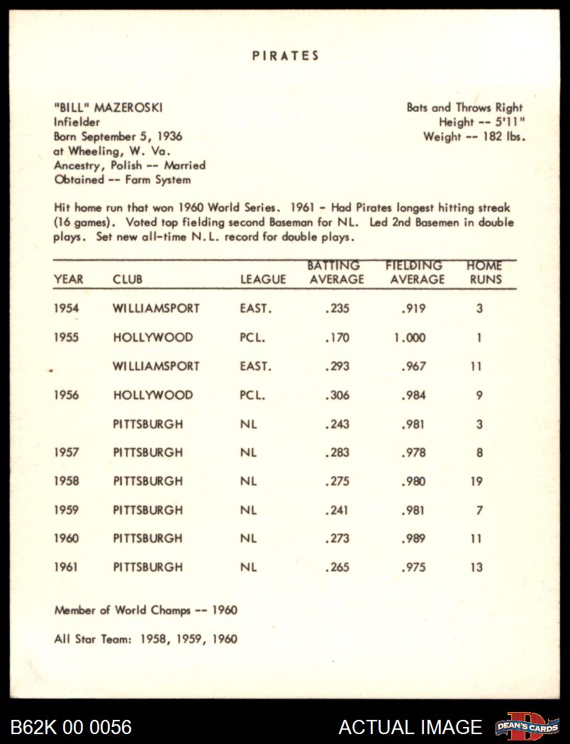 1962 Kahn's Bill Mazeroski