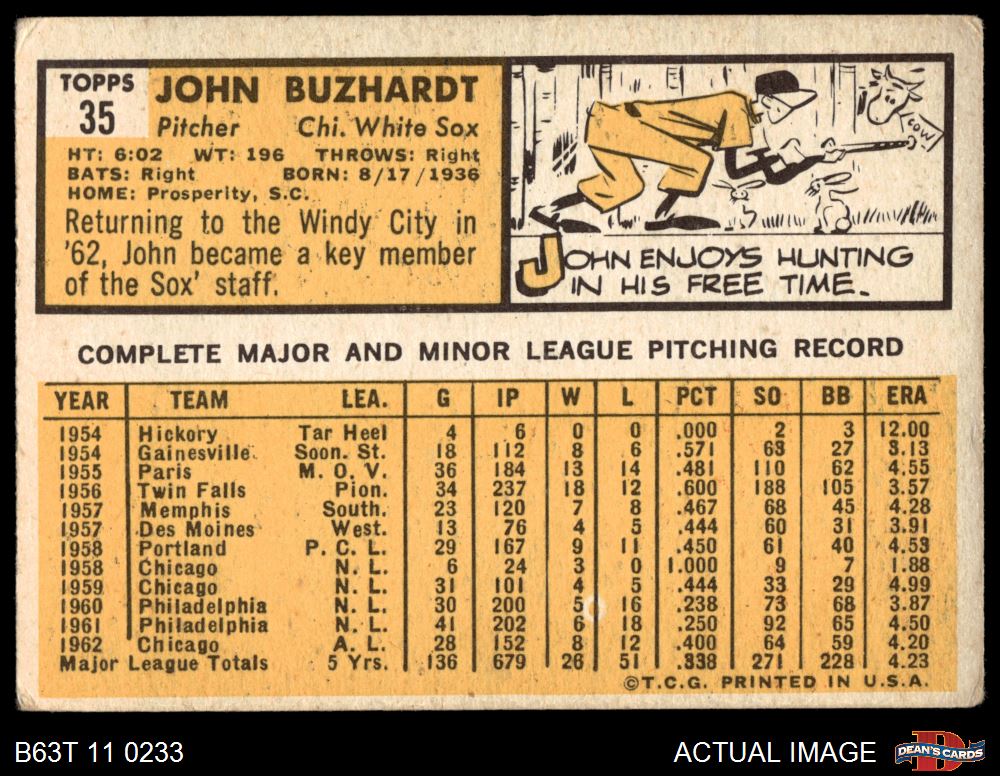 1963 Topps #35 John Buzhardt 3 - VG