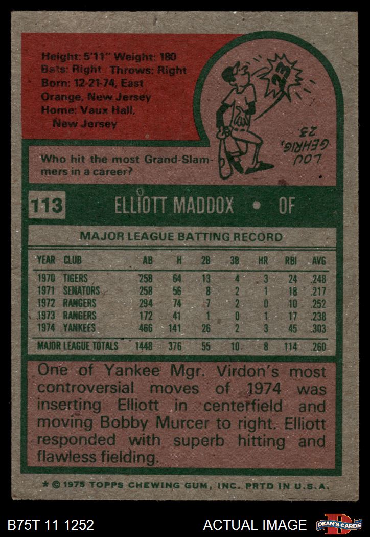 1975 Topps #113 Elliott Maddox