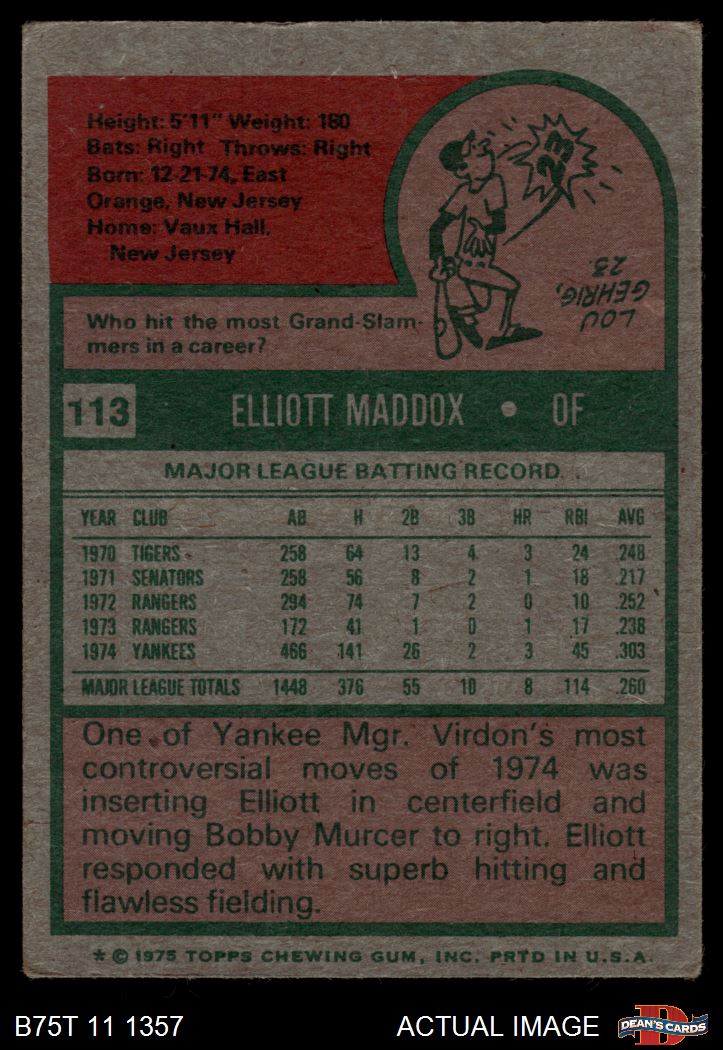 1975 Topps #113 Elliott Maddox 2 - GOOD