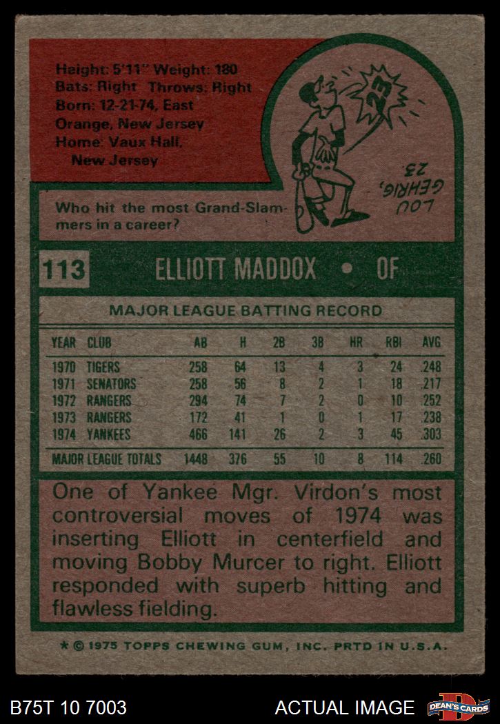 1975 Topps #113 Elliott Maddox 4 - VG/EX