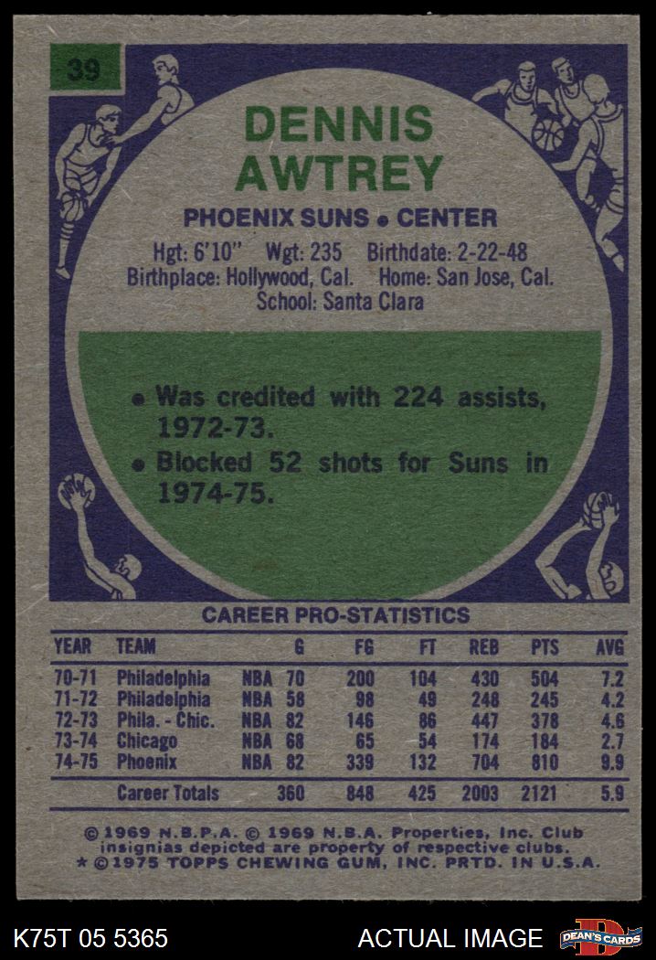 1975 Topps #39 Dennis Awtrey