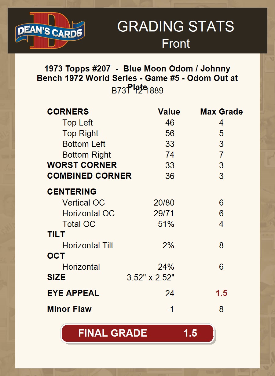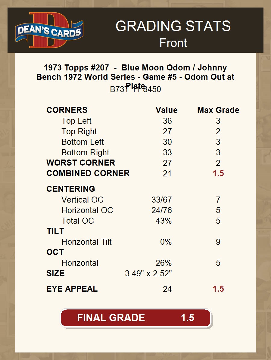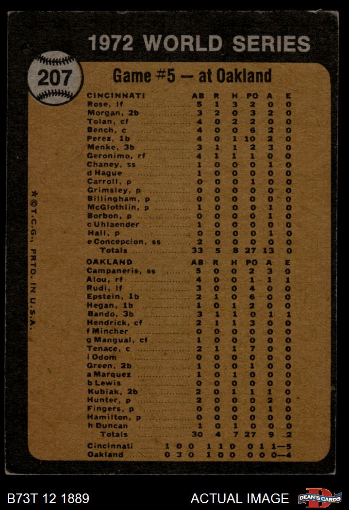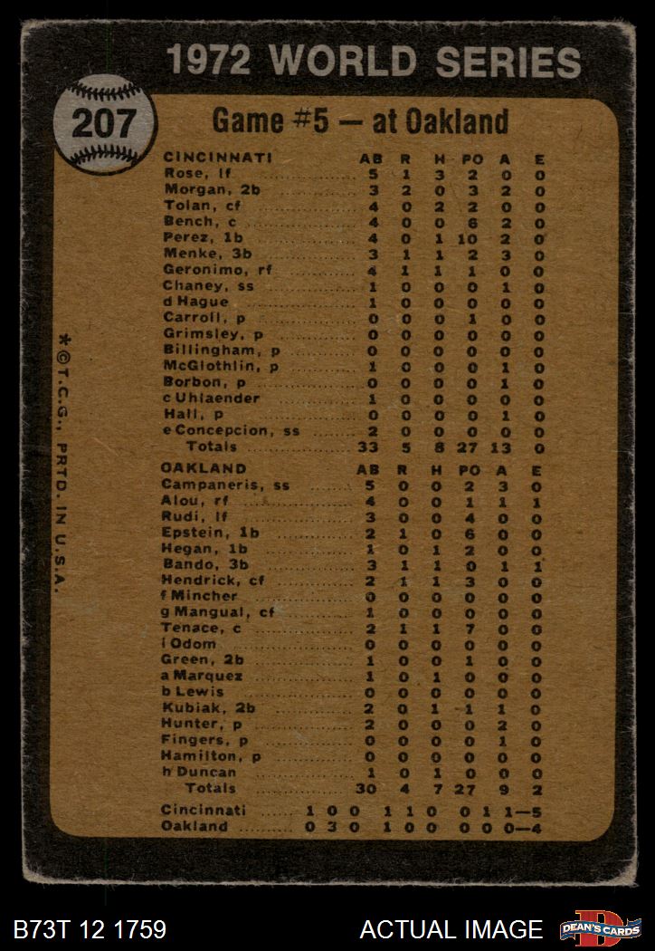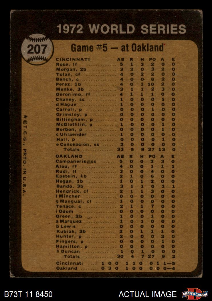 1973 Topps #207 - Blue Moon Odom / Johnny Bench 1972 World Series - Game #5 - Odom Out at Plate 1.5 - FAIR