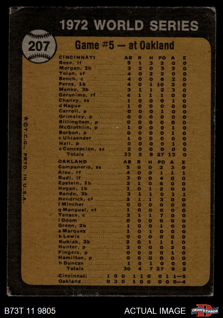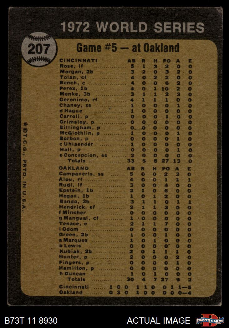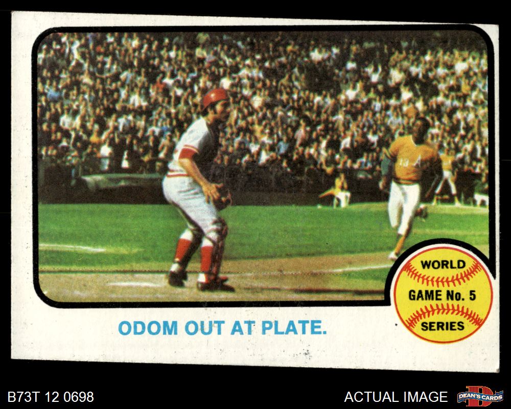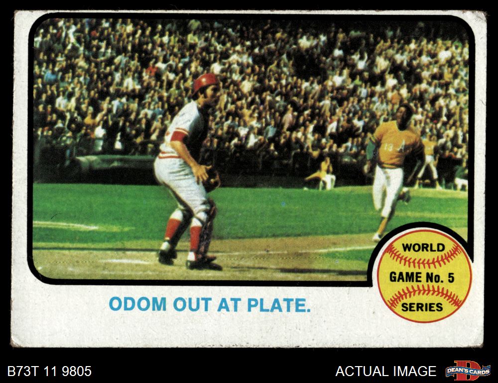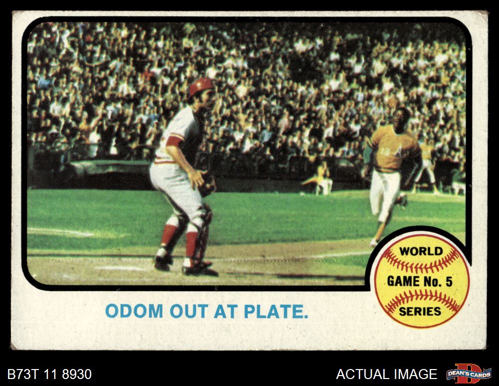 1973 Topps #207 - Blue Moon Odom / Johnny Bench 1972 World Series - Game #5 - Odom Out at Plate 2 - GOOD