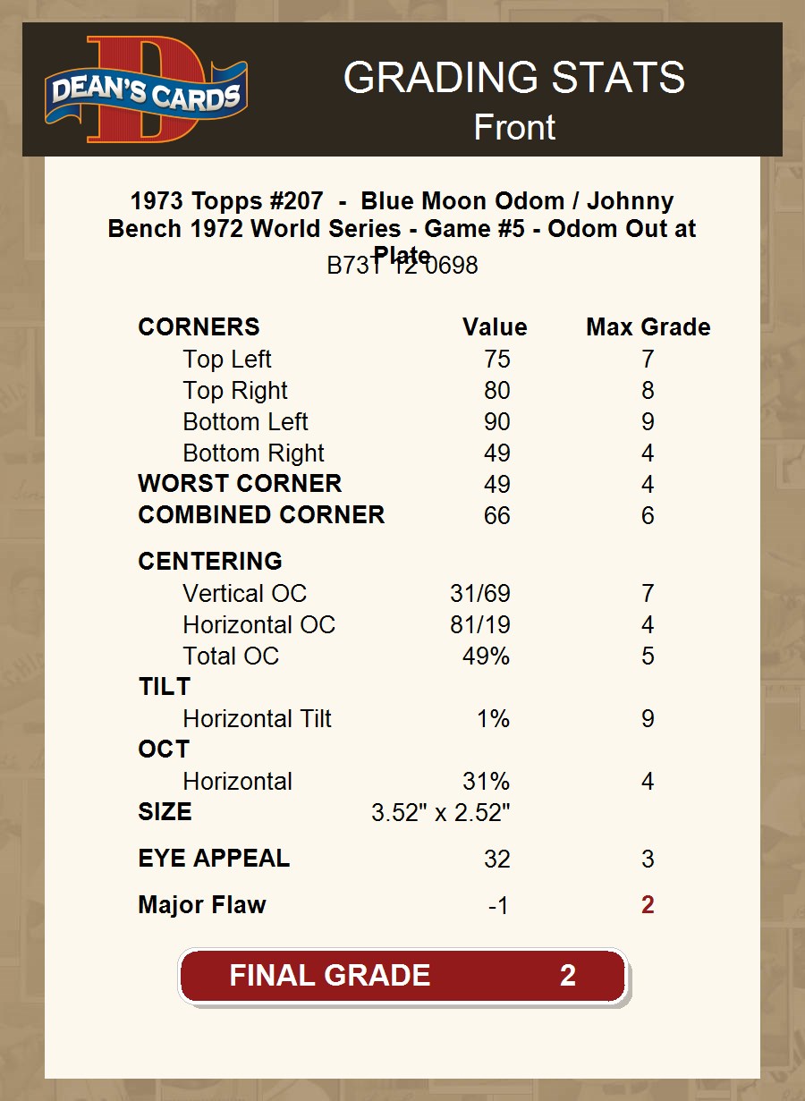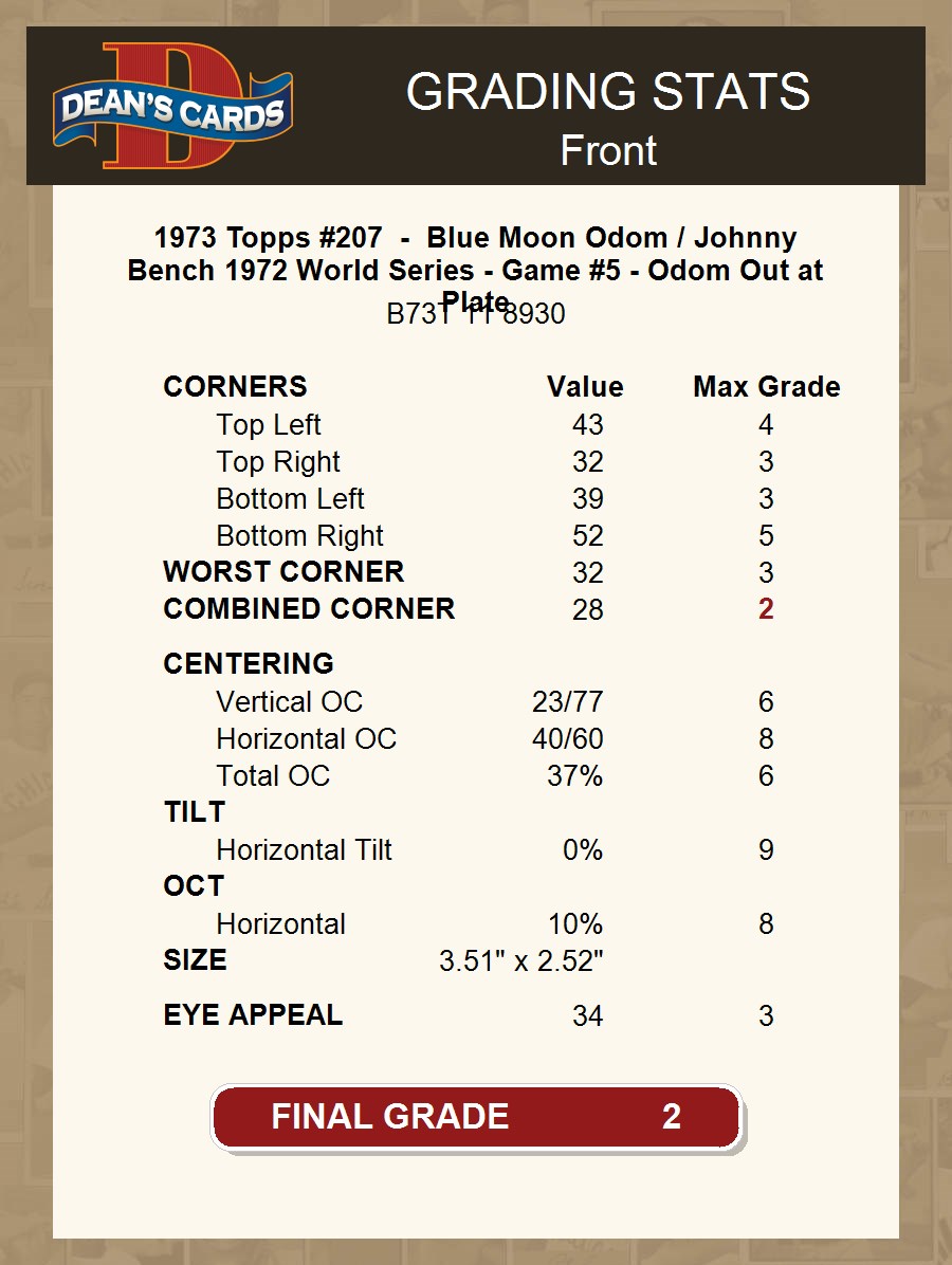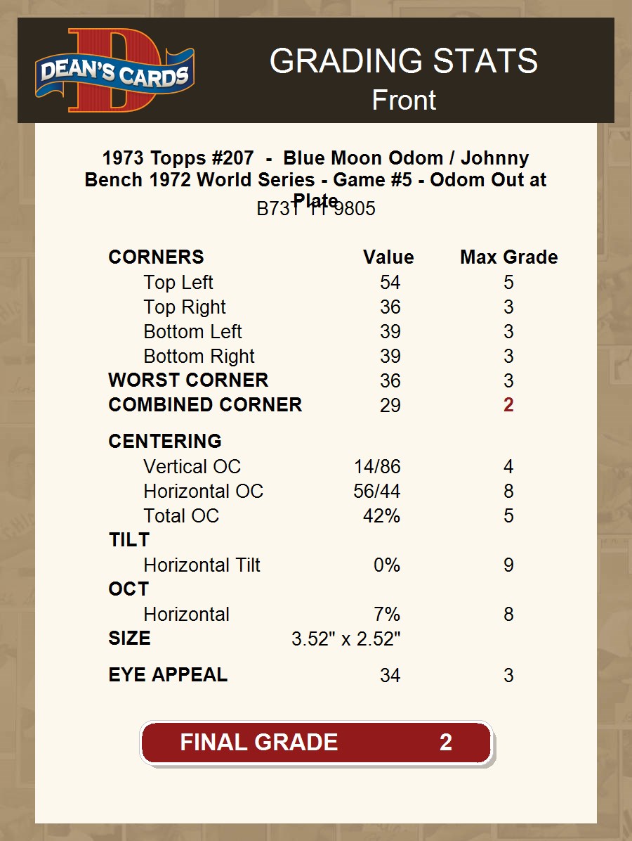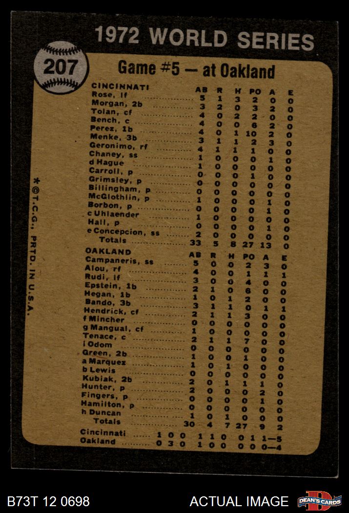 1973 Topps #207 - Blue Moon Odom / Johnny Bench 1972 World Series - Game #5 - Odom Out at Plate 2 - GOOD