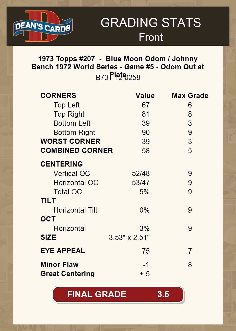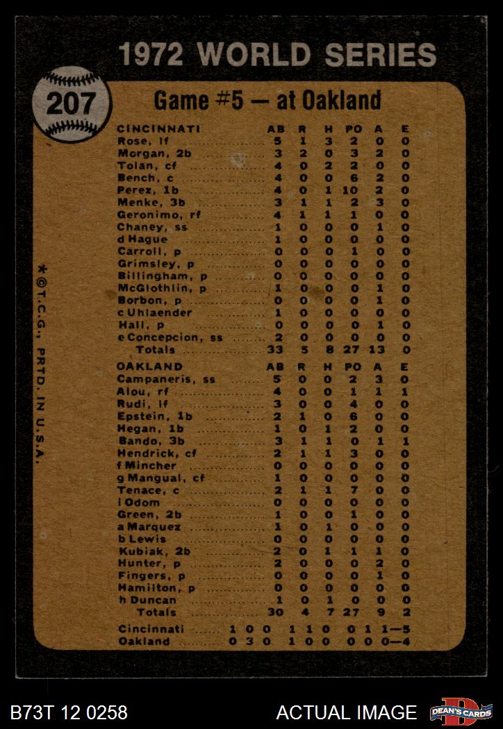 1973 Topps #207 - Blue Moon Odom / Johnny Bench 1972 World Series - Game #5 - Odom Out at Plate 3.5 - VG+