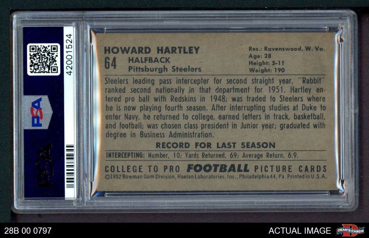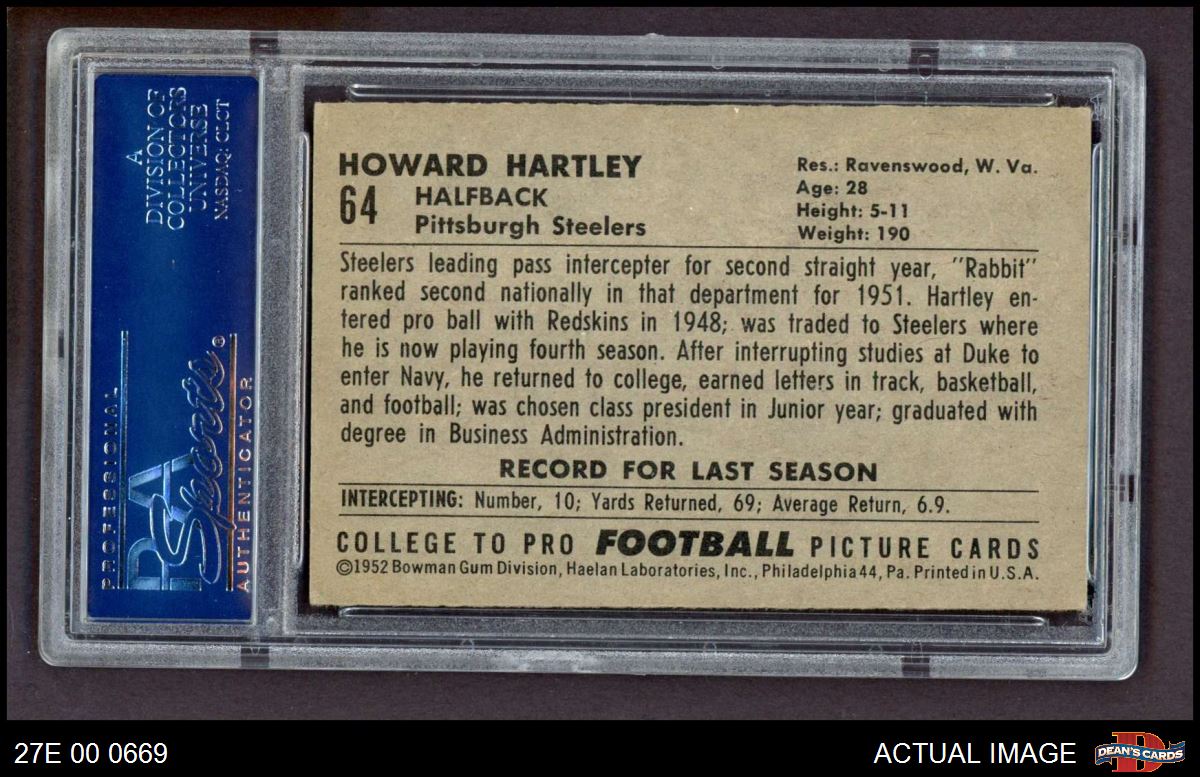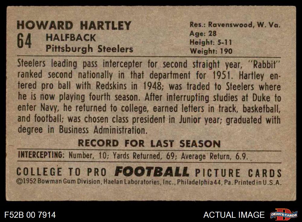 1952 Bowman Large #64 Howard Hartley