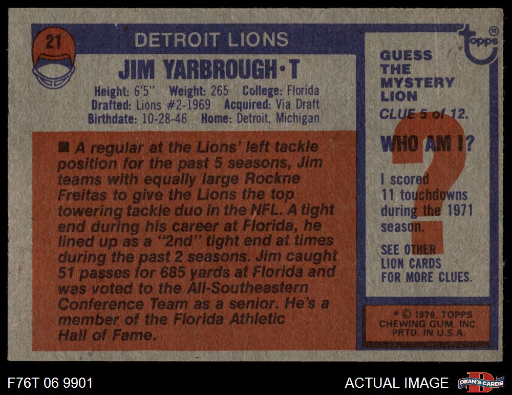 1976 Topps #21 Jim Yarbrough 5 - EX