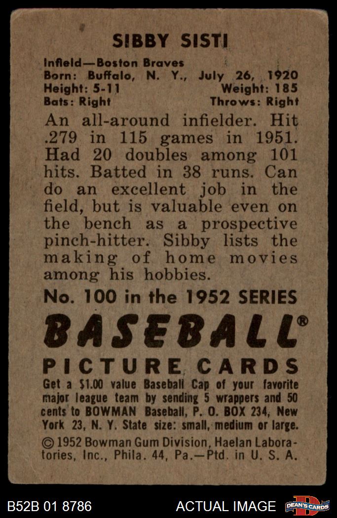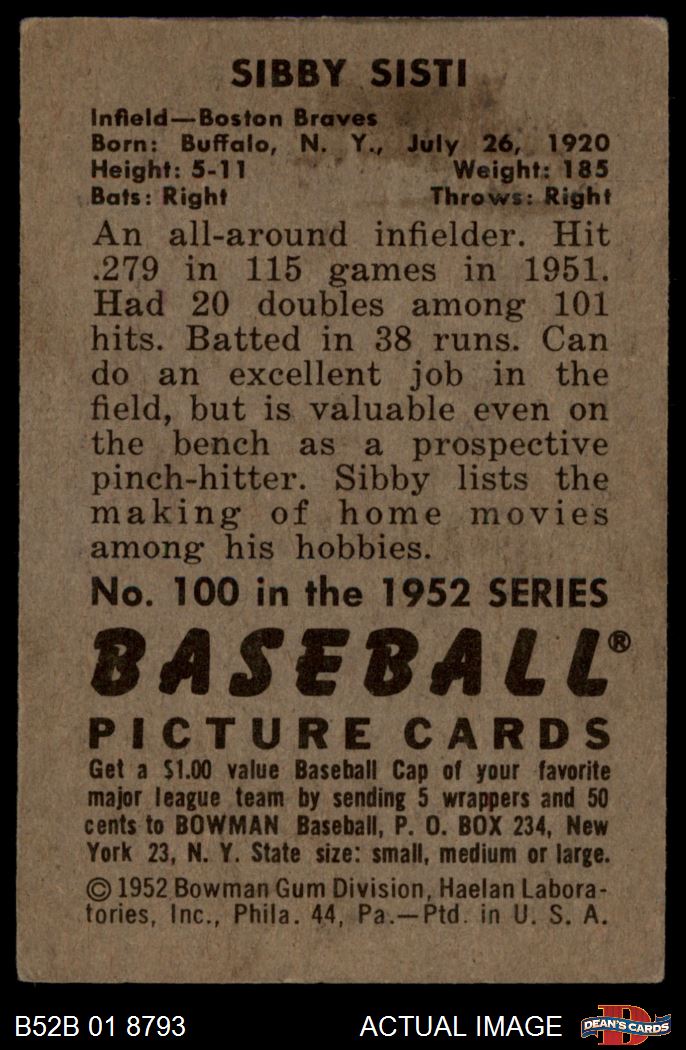 1952 Bowman #100 Sibby Sisti 2 - GOOD
