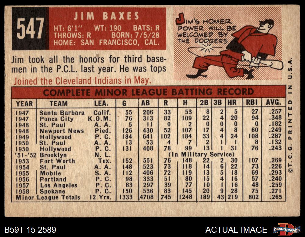 1959 Topps #547 Jim Baxes 4 - VG/EX