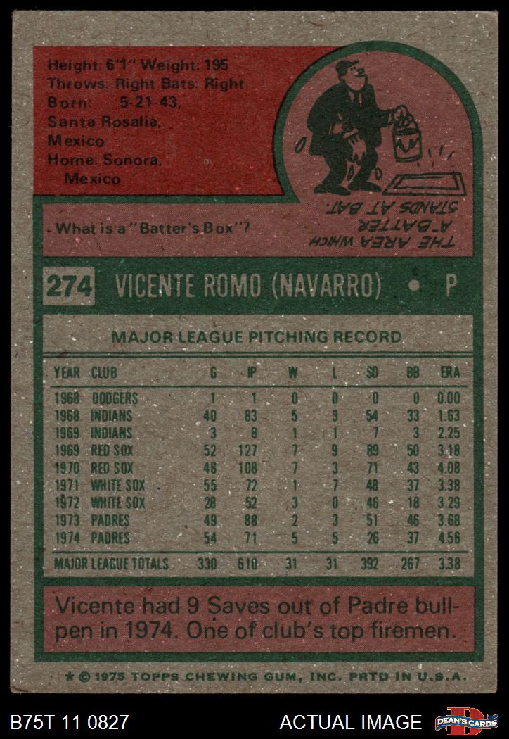 1975 Topps #274 Vicente Romo 6 - EX/MT