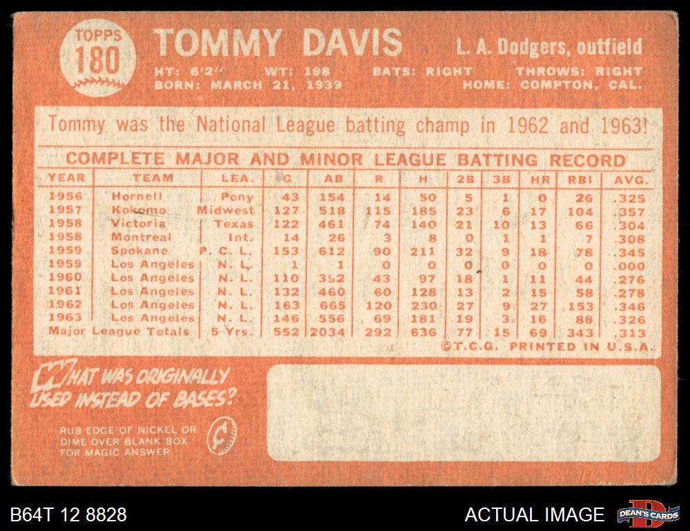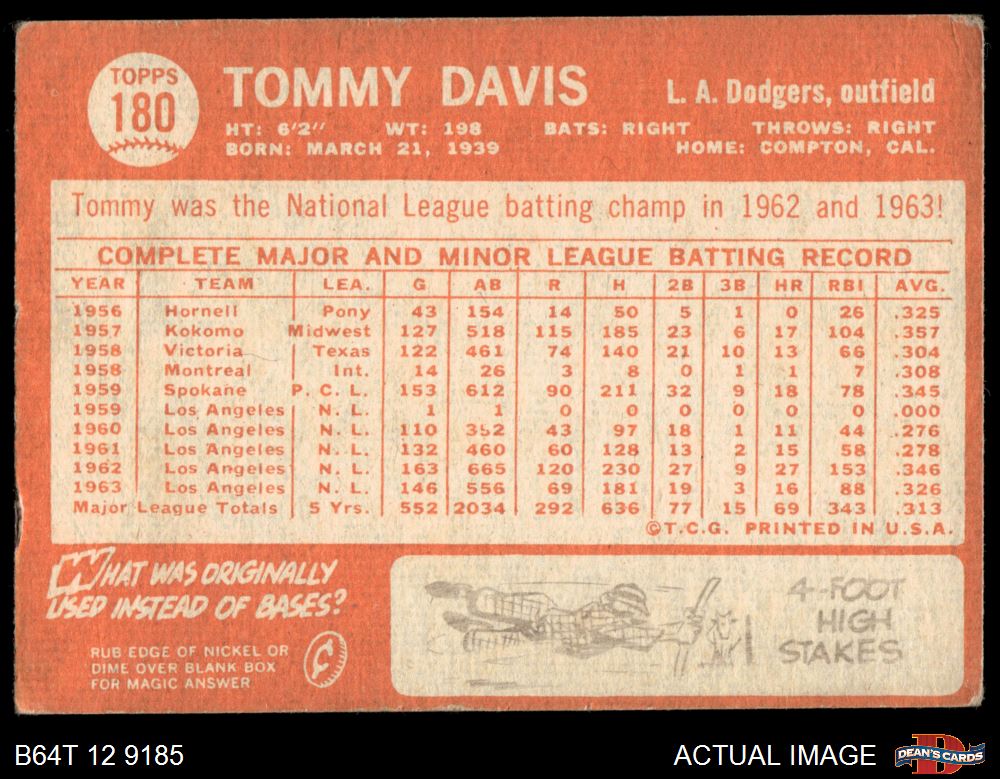 1964 Topps #180 Tommy Davis 2 - GOOD