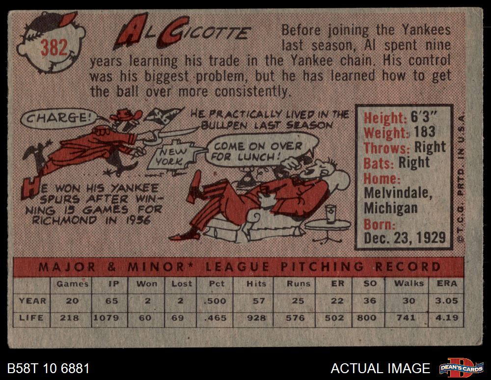 1958 Topps #382 Al Cicotte 2 - GOOD