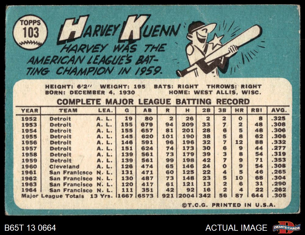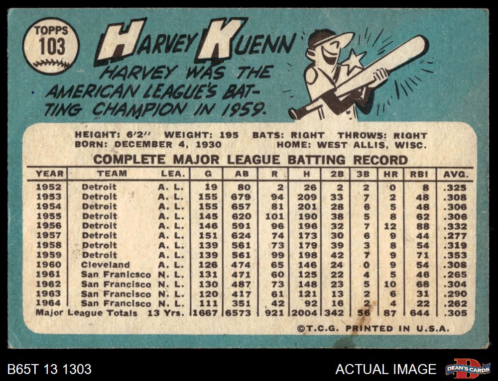 1965 Topps #103 Harvey Kuenn 2 - GOOD