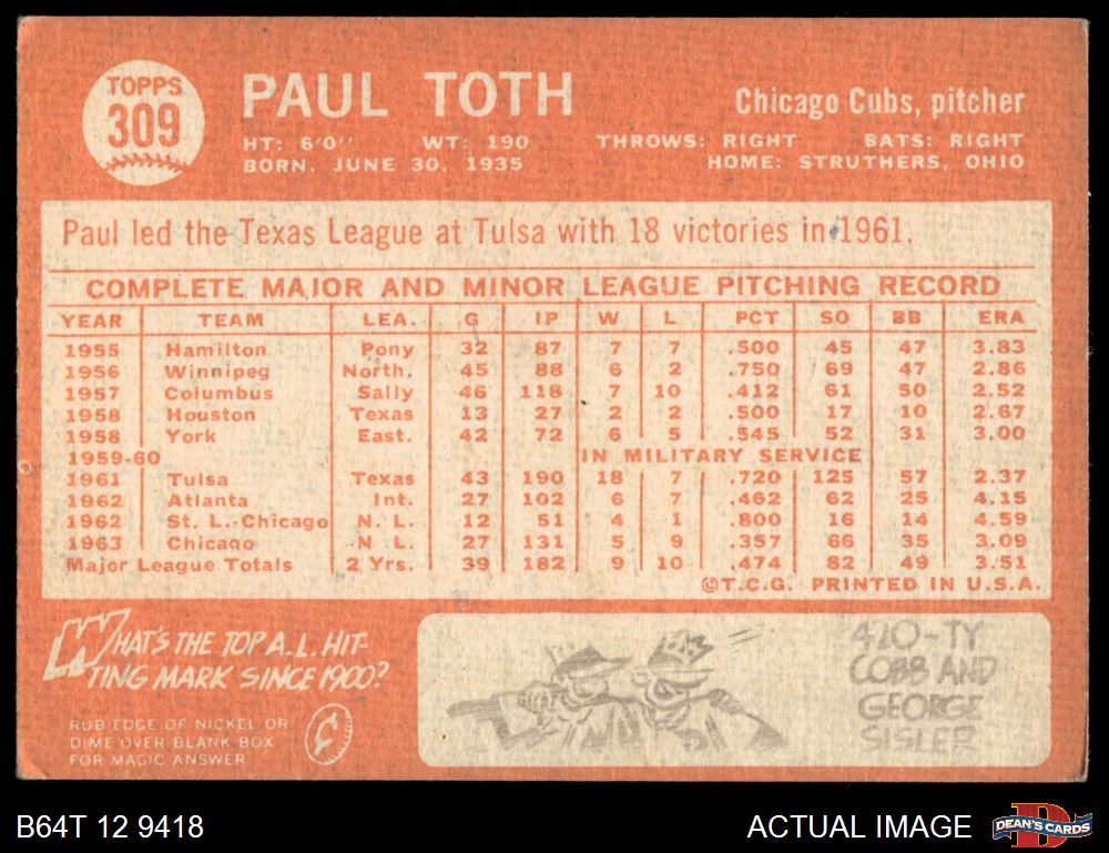 1964 Topps #309 COR Paul Toth 1.5 - FAIR