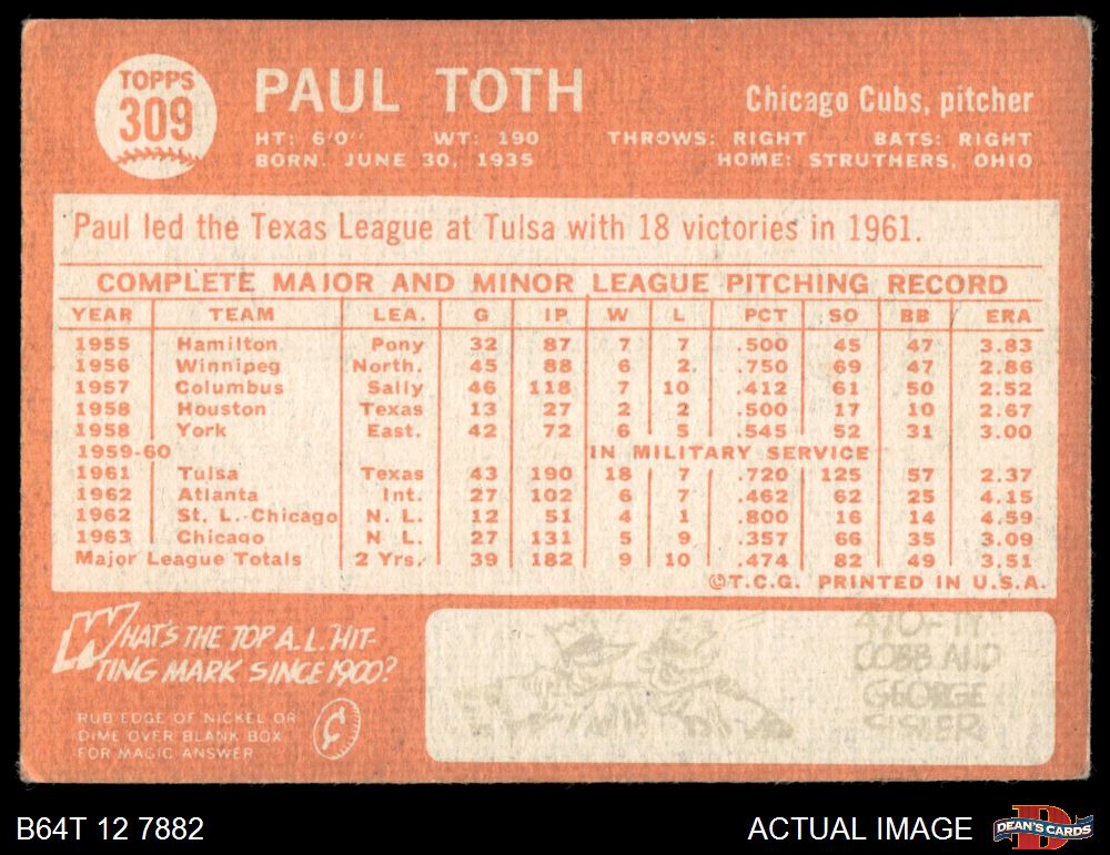1964 Topps #309 COR Paul Toth 2.5 - GD+
