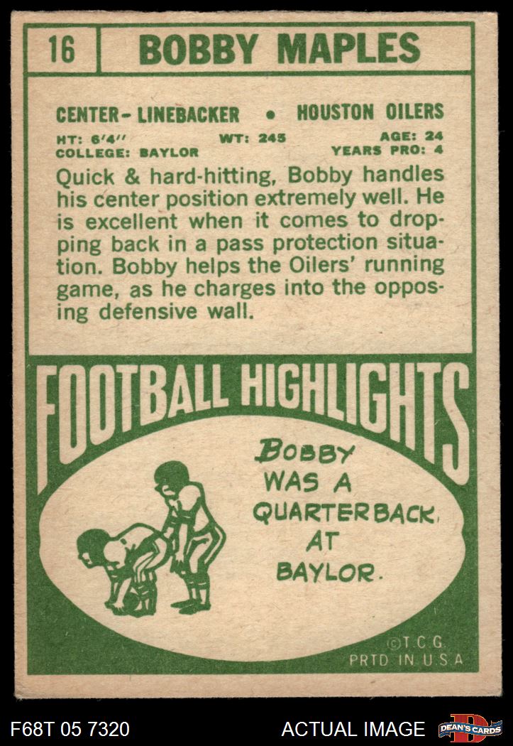 1968 Topps Football Cards (2,556 available)1968 Topps Oilers (134 available)