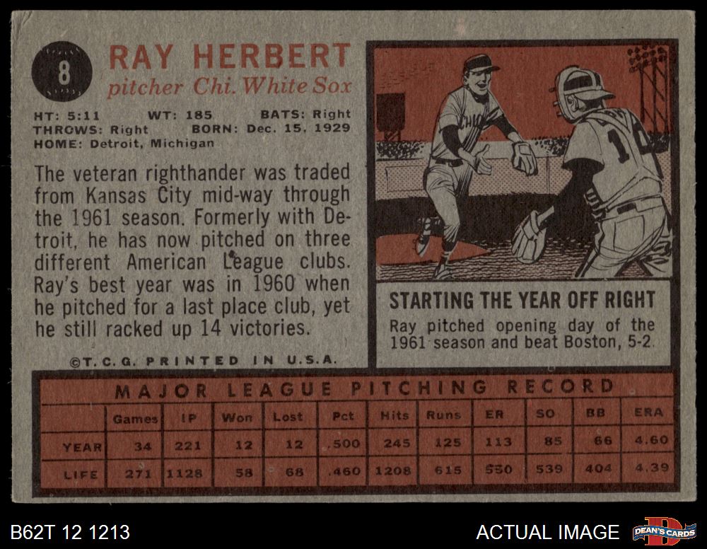 1962 Topps #8 Ray Herbert 2 - GOOD
