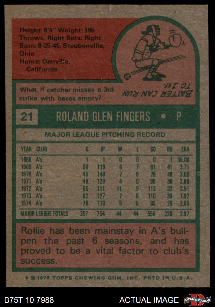 1975 Topps #21 Rollie Fingers 6 - EX/MT