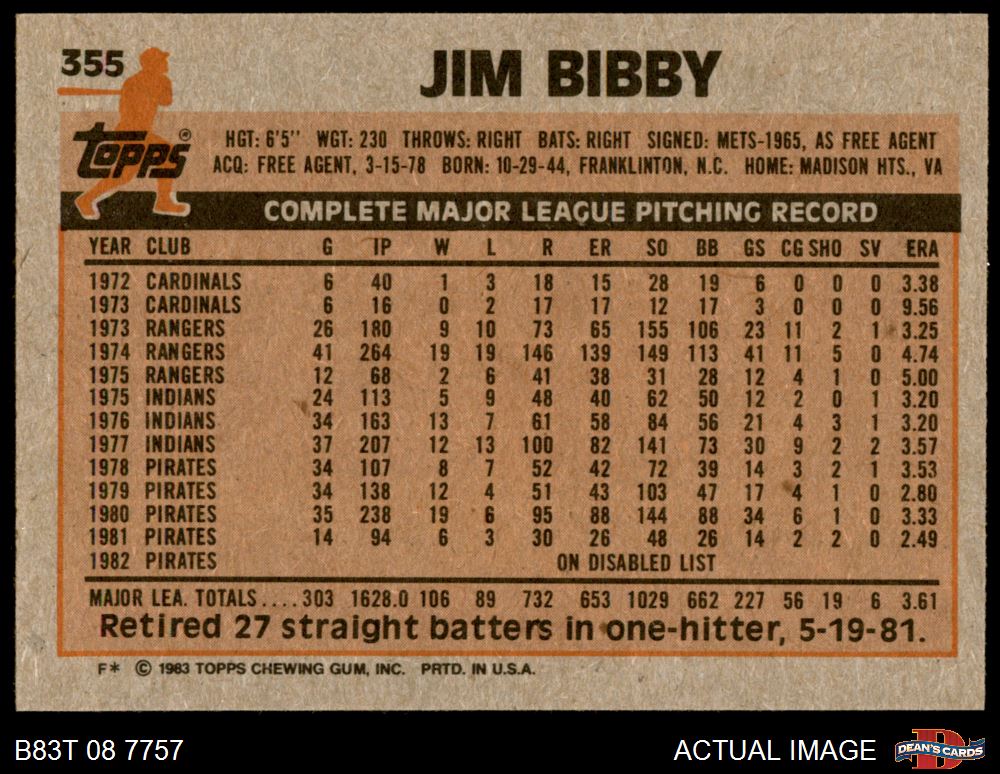 1983 Topps #355 Jim Bibby 8 - NM/MT