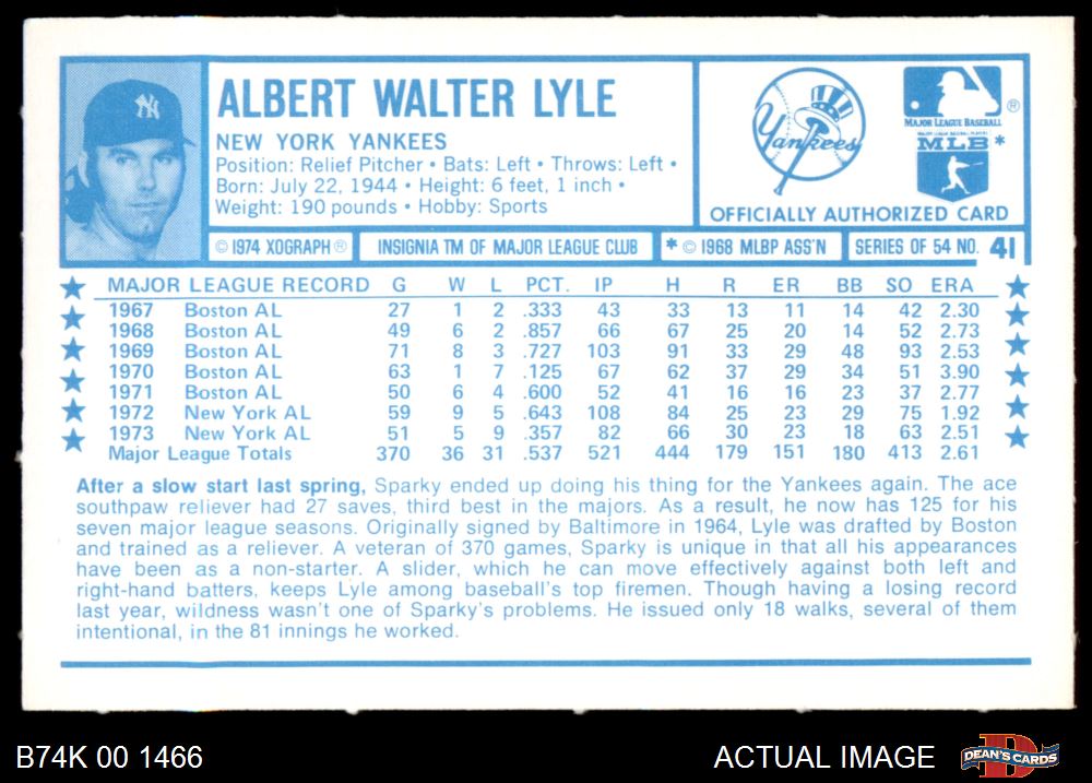 1974 Kellogg's #41 Sparky Lyle 8 - NM/MT