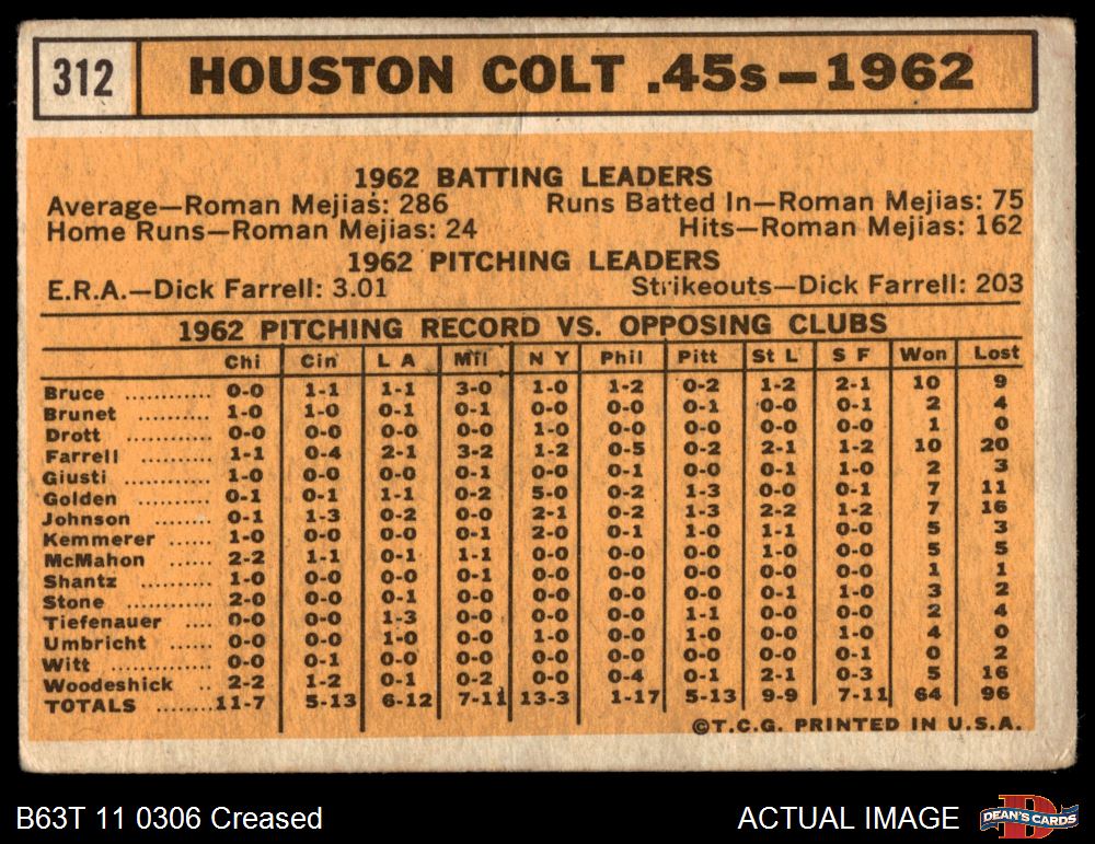 1963 Topps #312 Colt 45s Team 2 - GOOD
