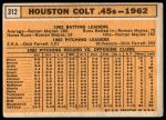1963 Topps #312  Colt 45s Team Front Thumbnail