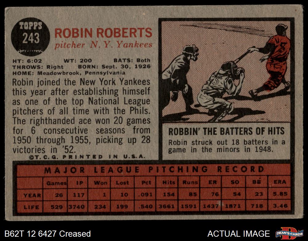1962 Topps #243 Robin Roberts 2 - GOOD