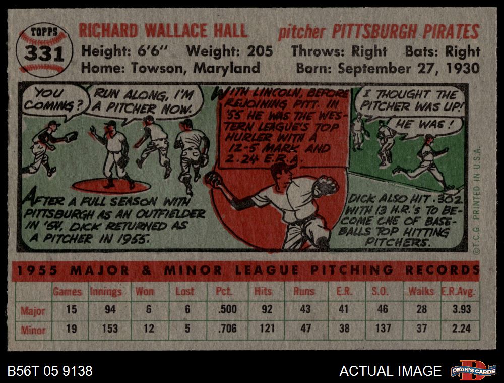 1956 Topps #331 Dick Hall 7 - NM