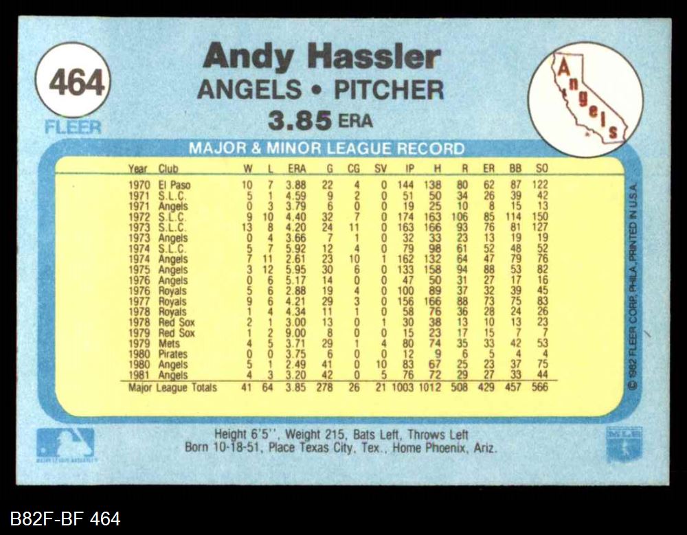 1982 Fleer #464 Andy Hassler 8 - NM/MT