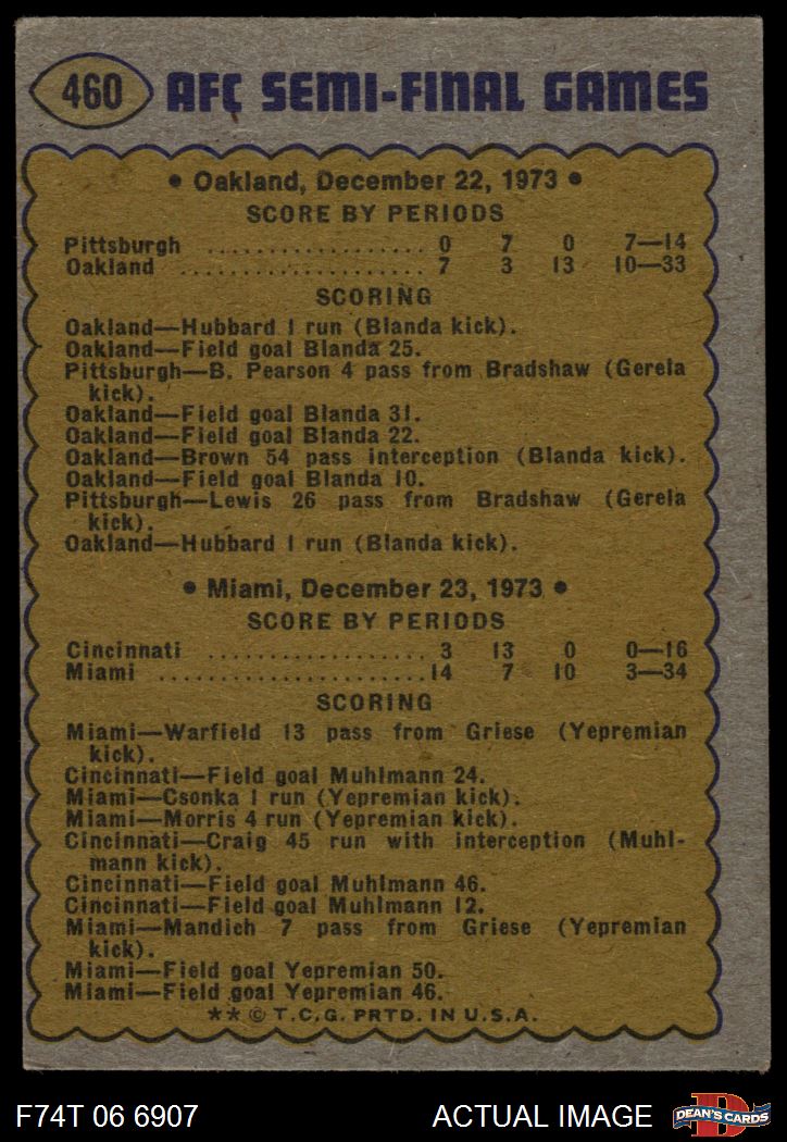 1974 Topps #460 AFC Semi-Finals 3 - VG