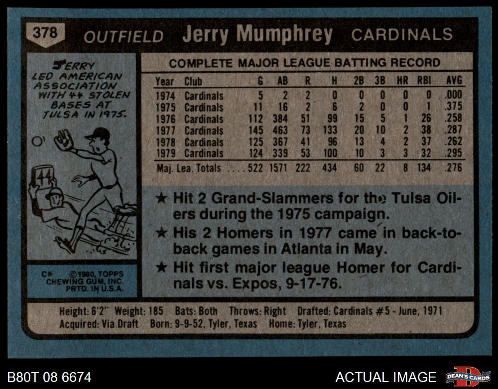 1980 Topps #378 Jerry Mumphrey 7 - NM