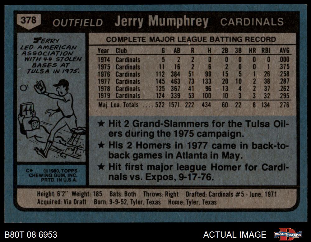 1980 Topps #378 Jerry Mumphrey 8 - NM/MT