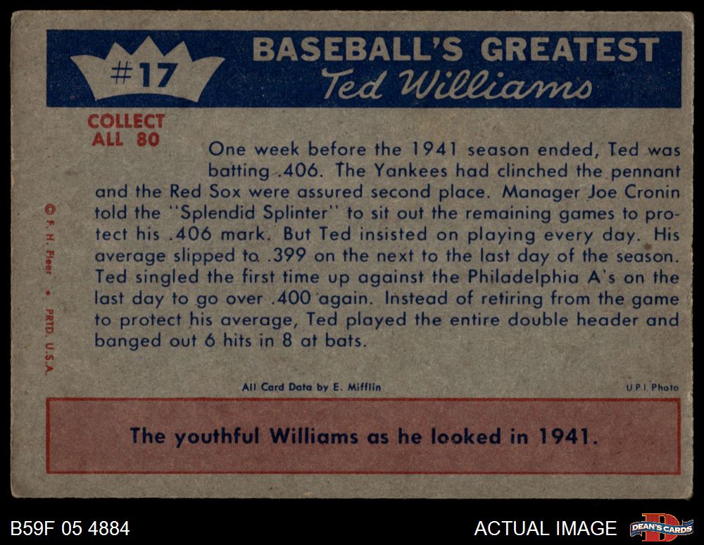 1959 Fleer #17 - Ted Williams How Ted Hit .400 4 - VG/EX