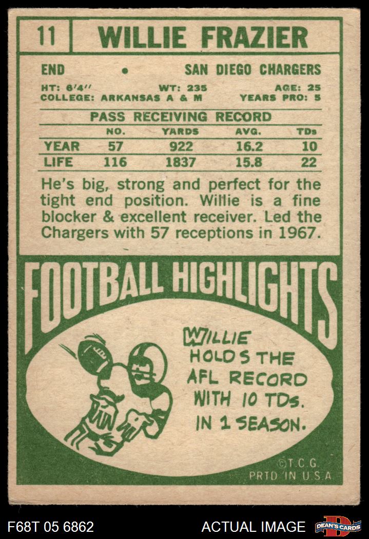 1968 Topps #11 Willie Frazier 4 - VG/EX