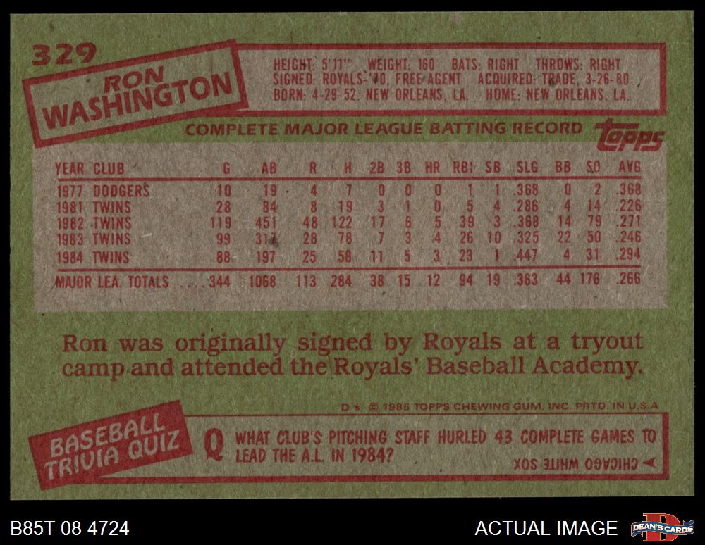 1985 Topps #329 Ron Washington
