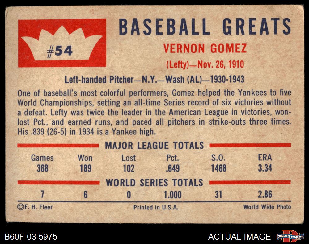 1960 Fleer #54 Lefty Gomez 2.5 - GD+
