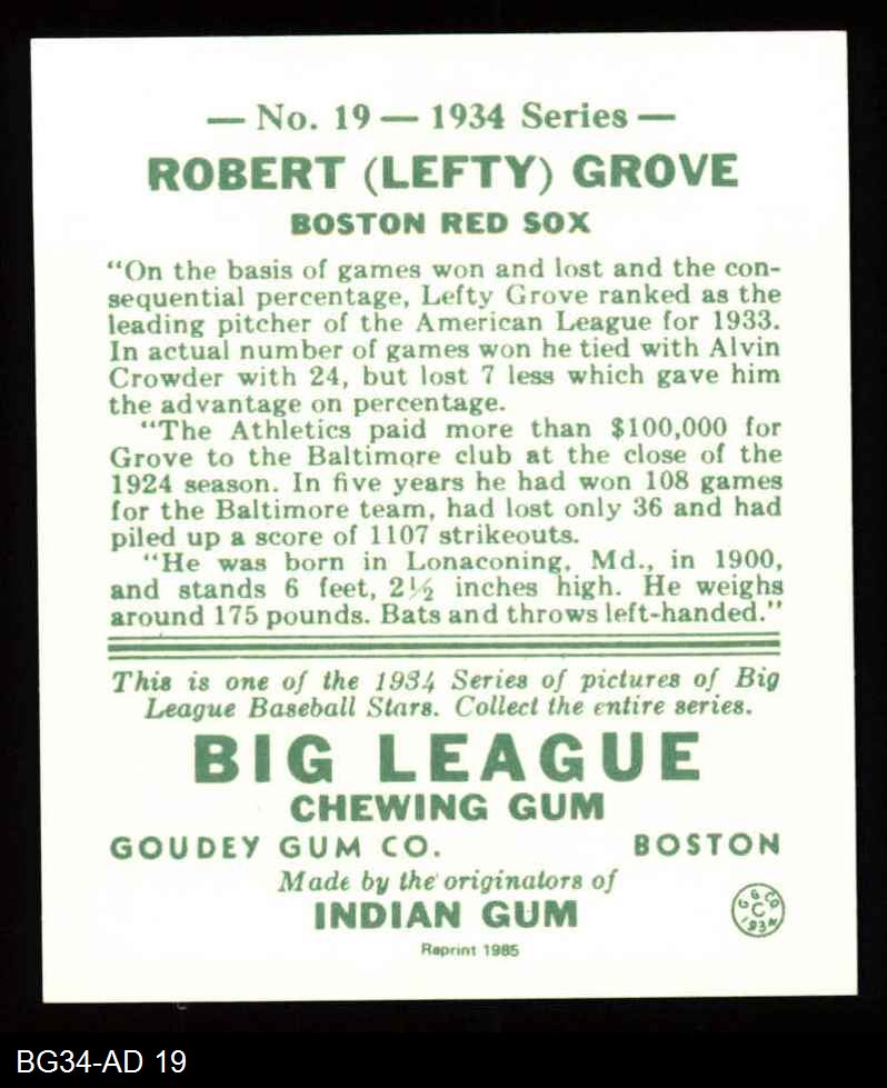 1934 Goudey Reprint (492 available)1934 Goudey Reprint Red Sox (23 available)