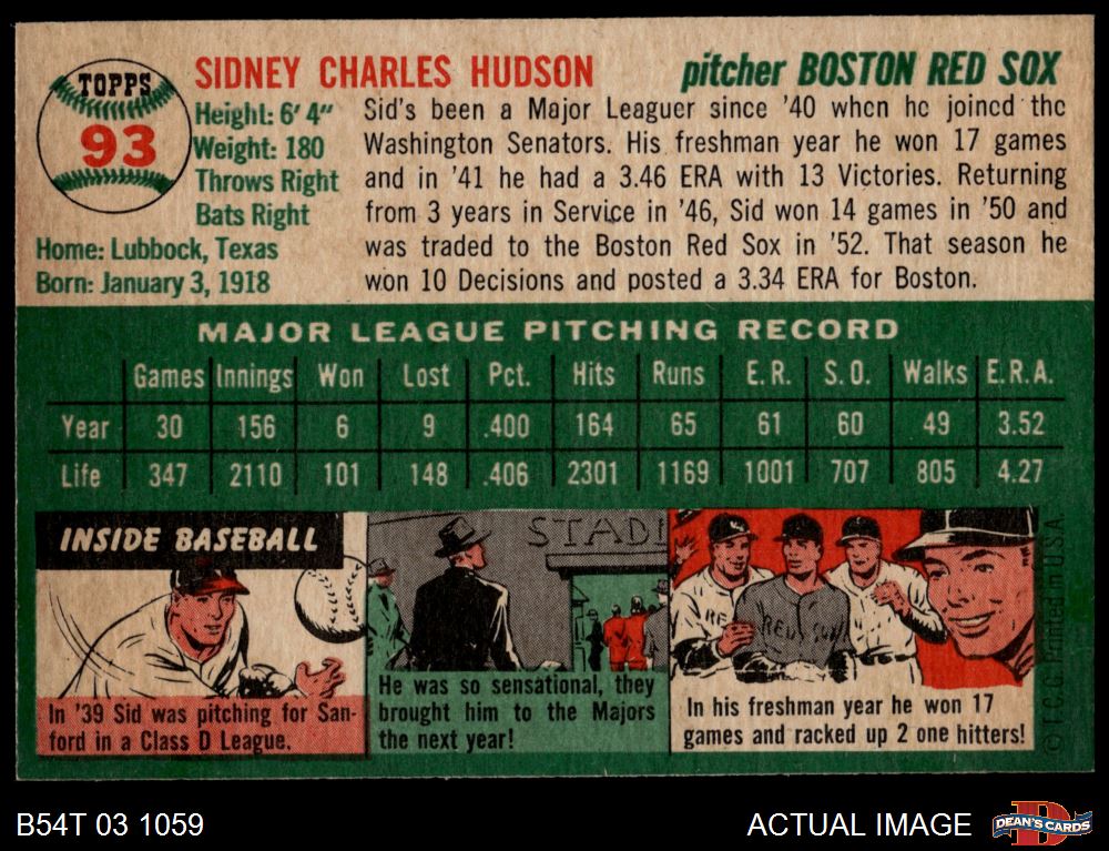 1954 Topps #93 Sid Hudson