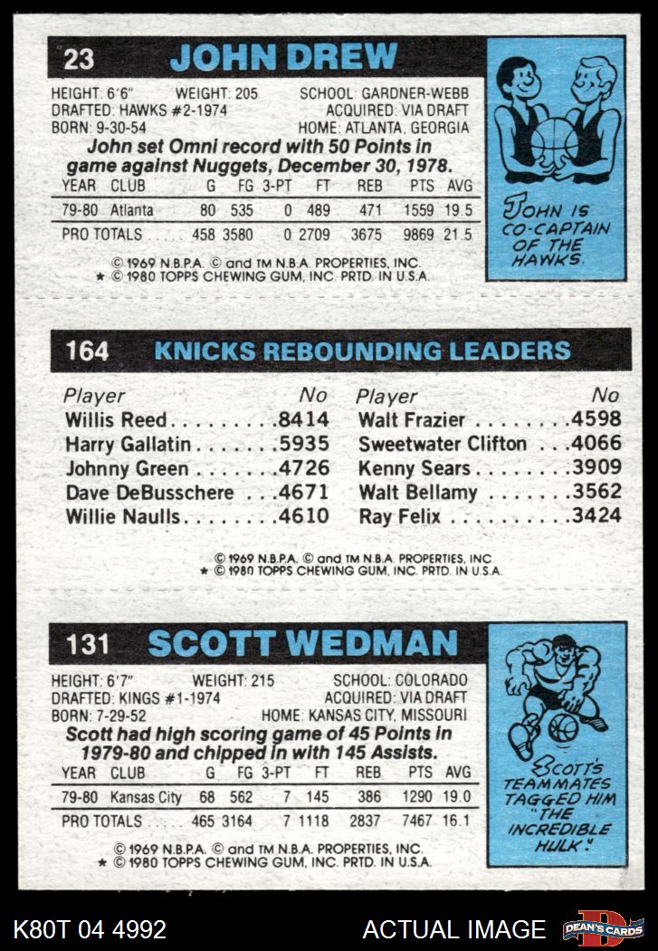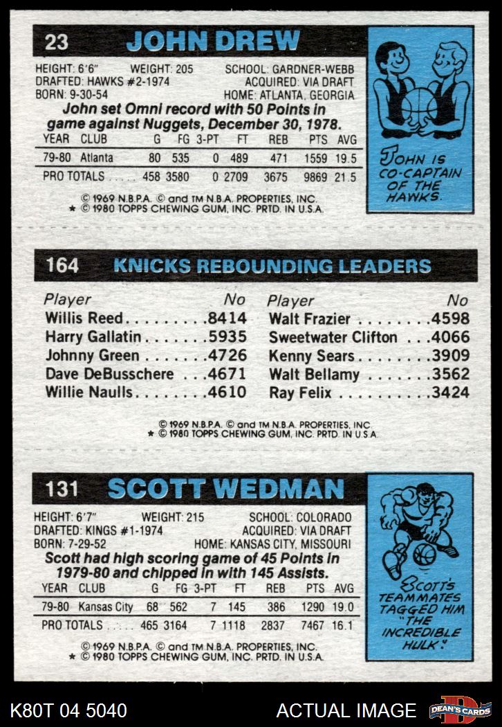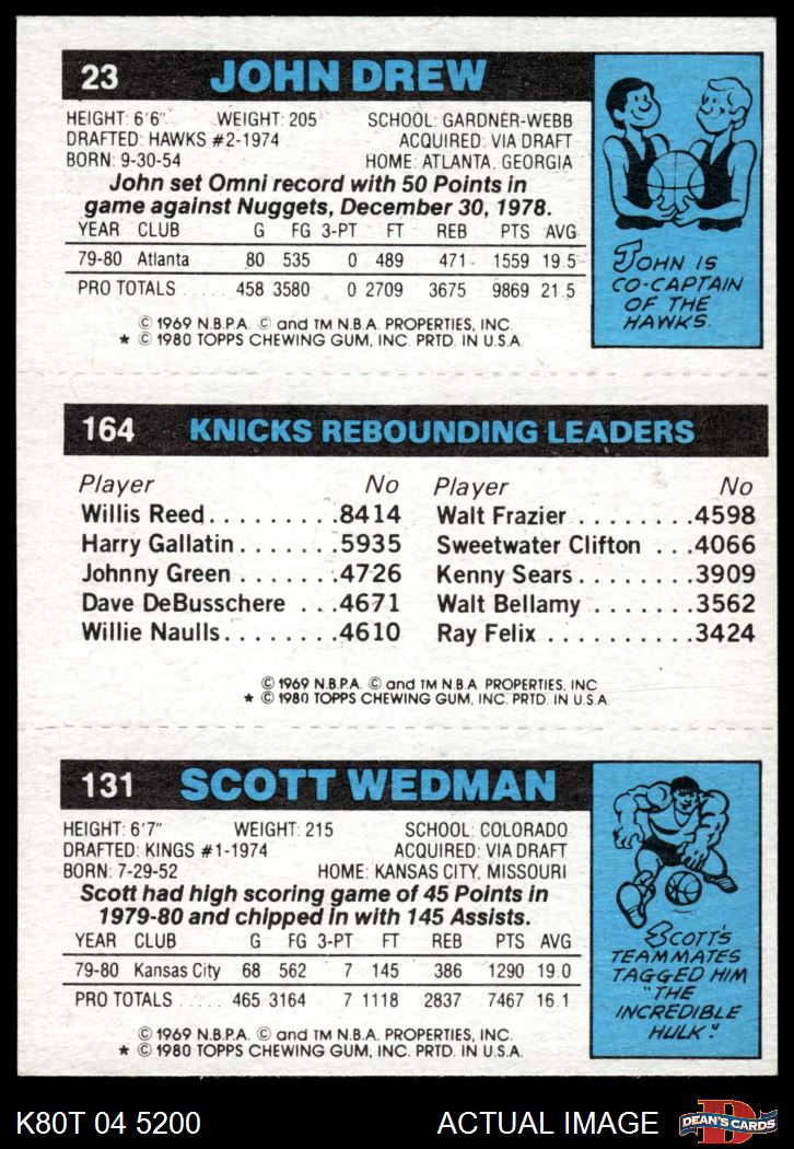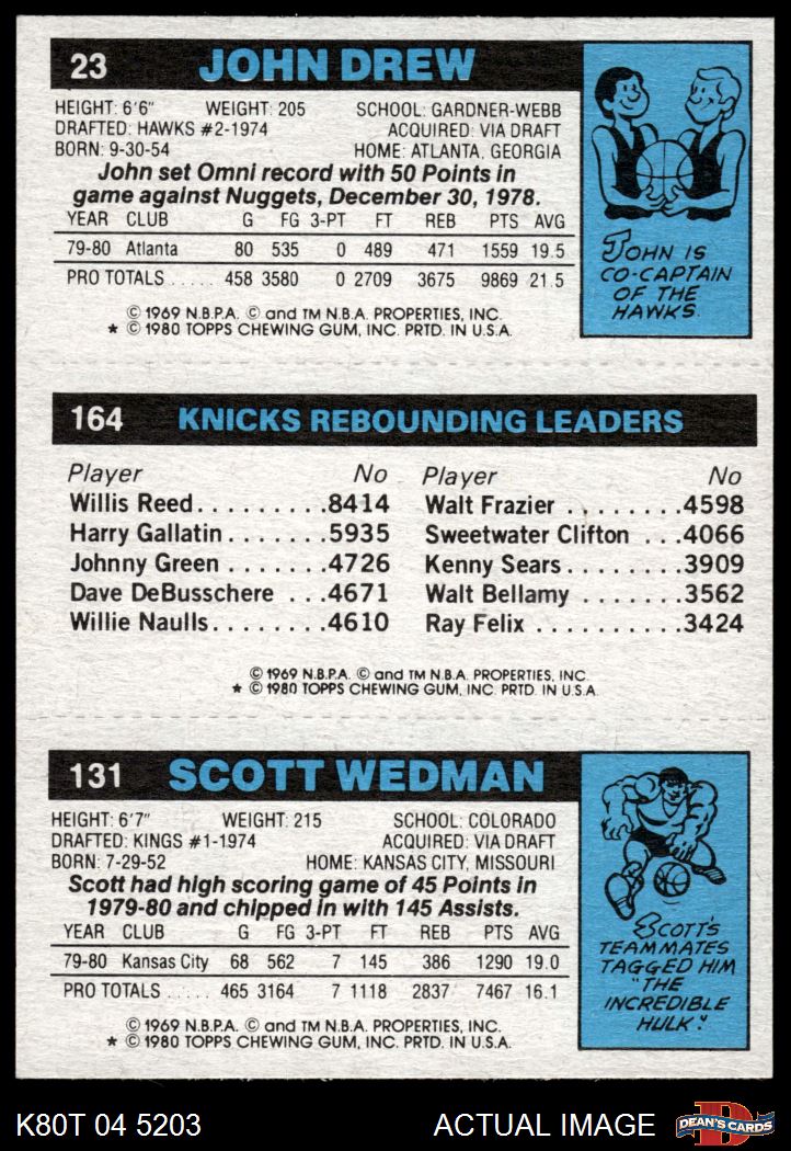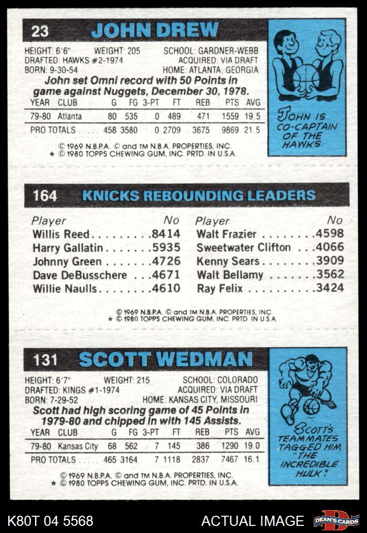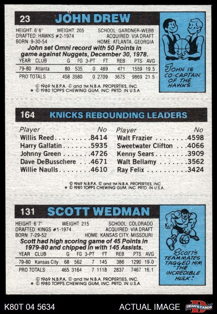 1980 Topps - Scott Wedman / Bill Cartwright / John Drew 131 / 164 / 23 8 - NM/MT