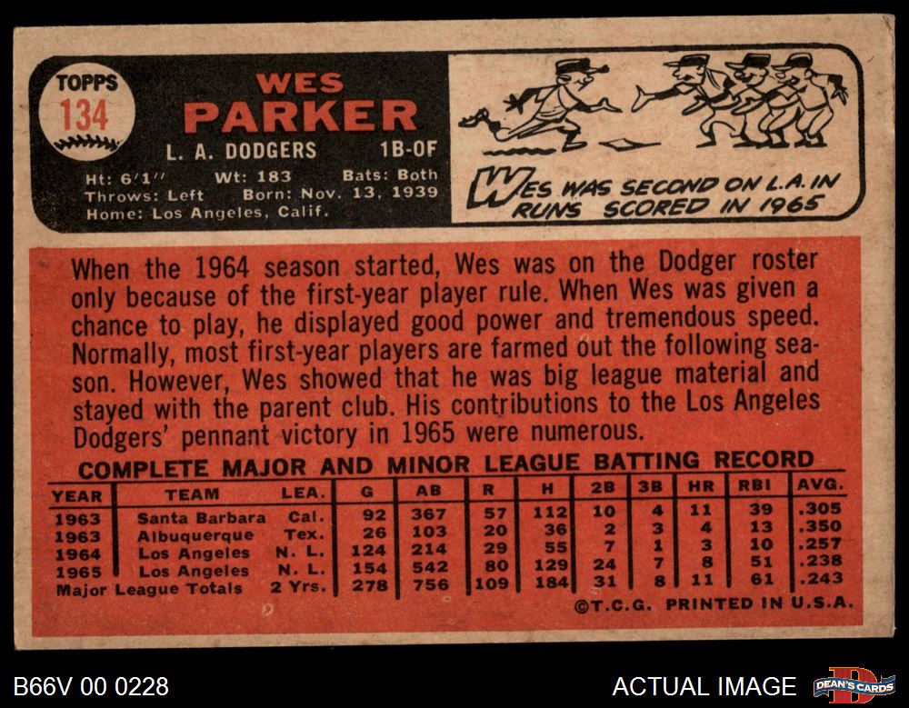 1966 Topps Venezuelan #134 Wes Parker 4 - VG/EX