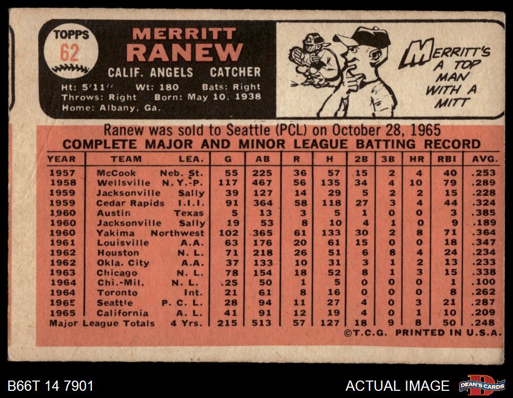 1966 Topps #62 SLD Merritt Ranew