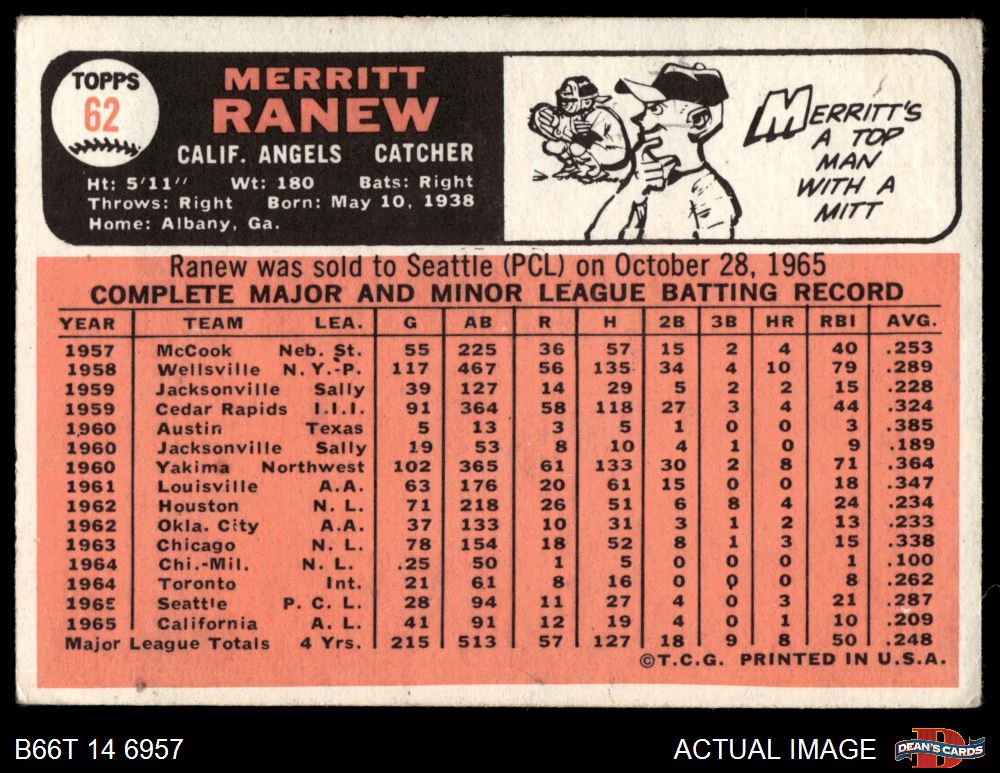 1966 Topps #62 SLD Merritt Ranew 2 - GOOD