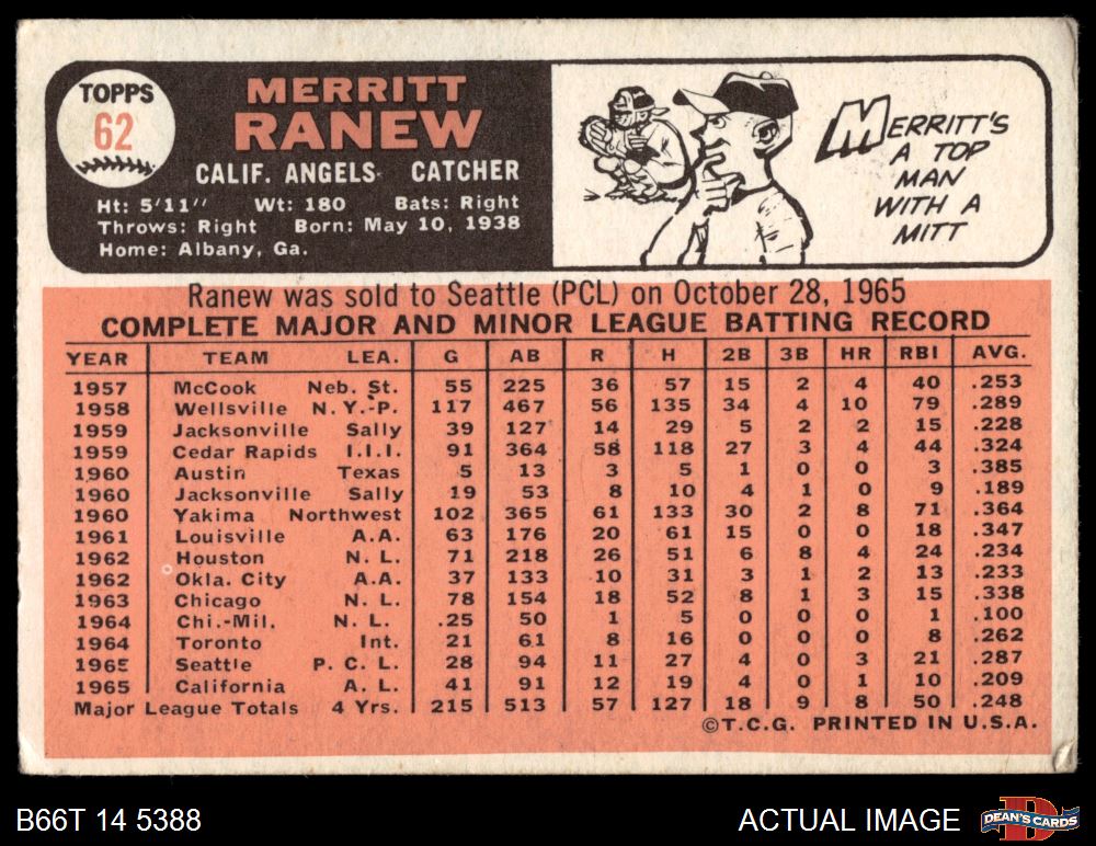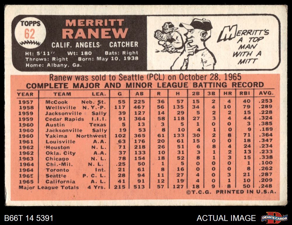 1966 Topps #62 SLD Merritt Ranew 2.5 - GD+