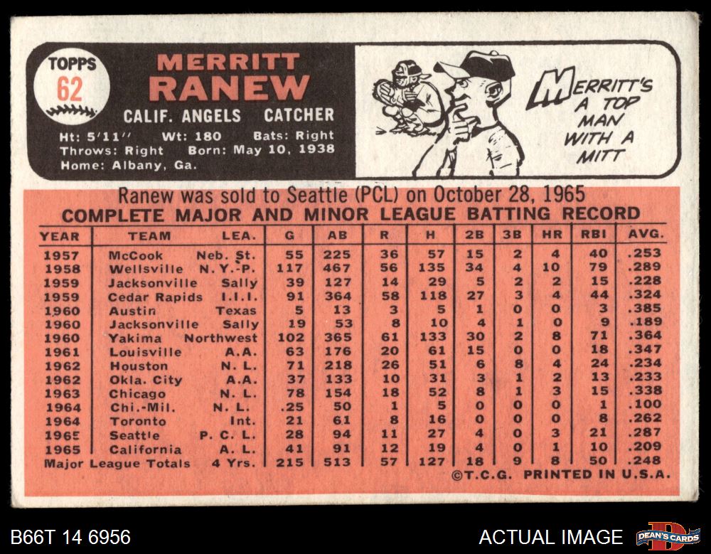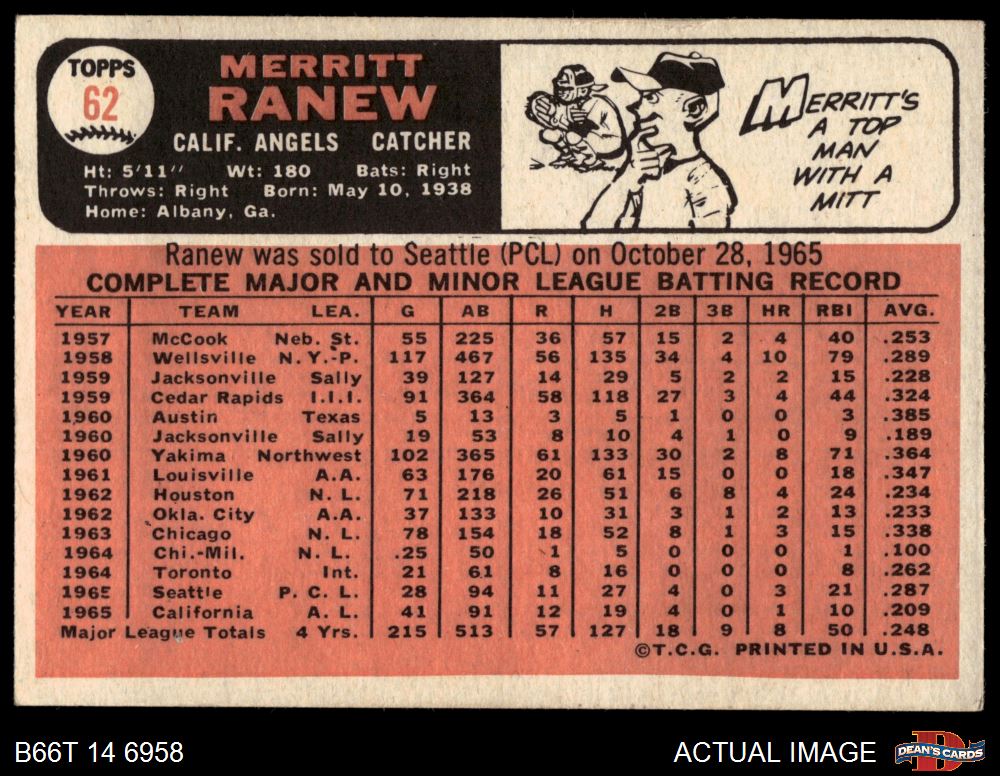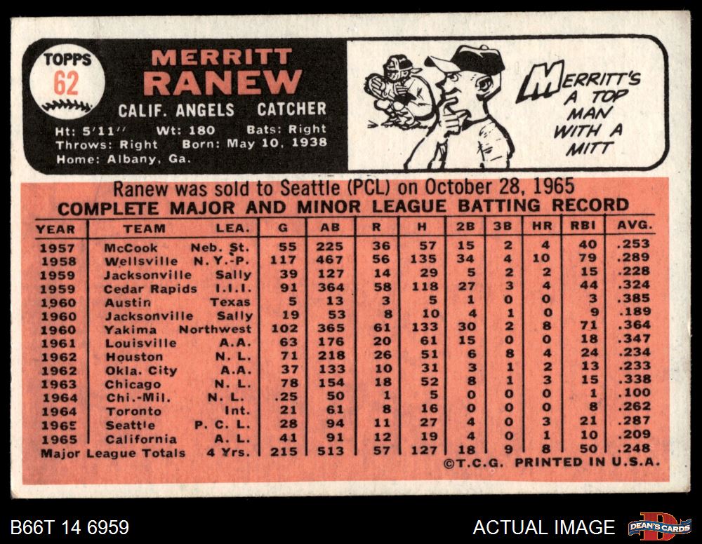 1966 Topps #62 SLD Merritt Ranew 3 - VG