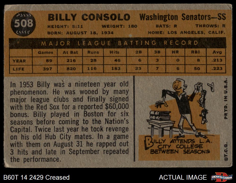 1960 Topps #508 Billy Consolo 1.5 - FAIR